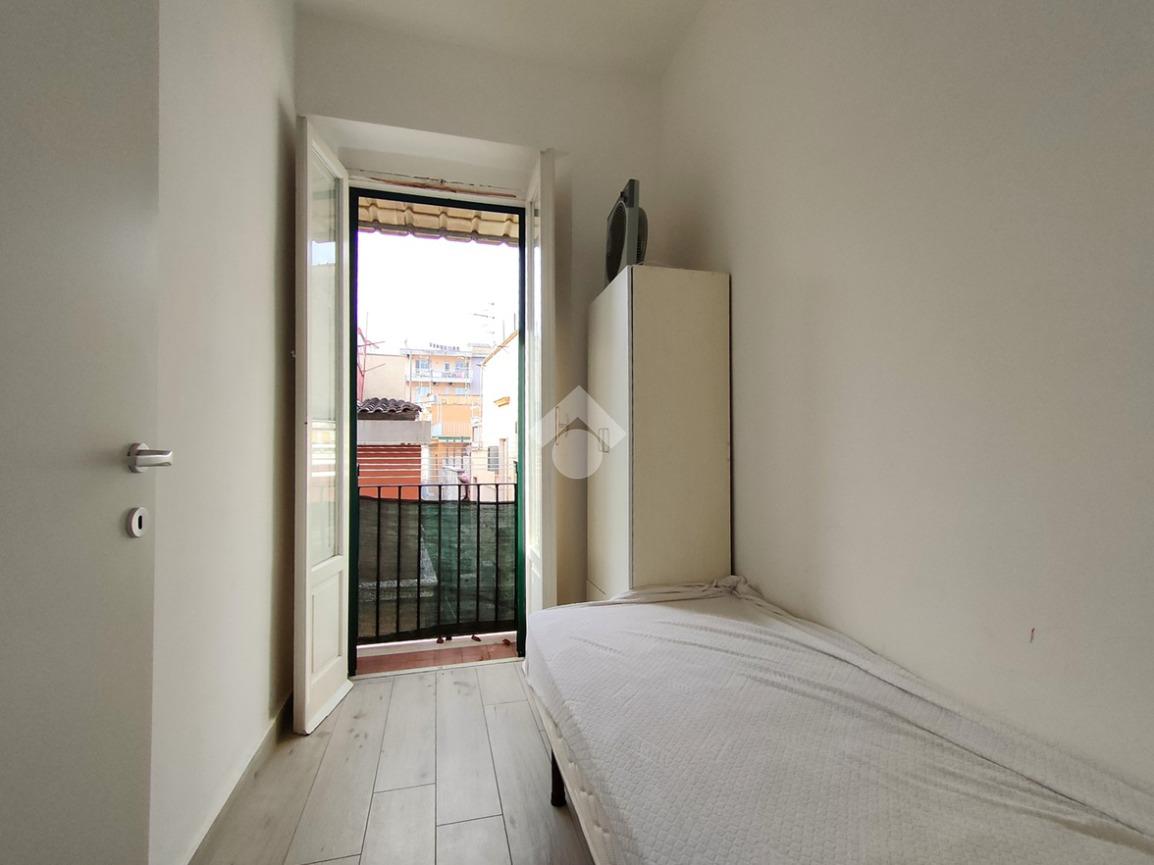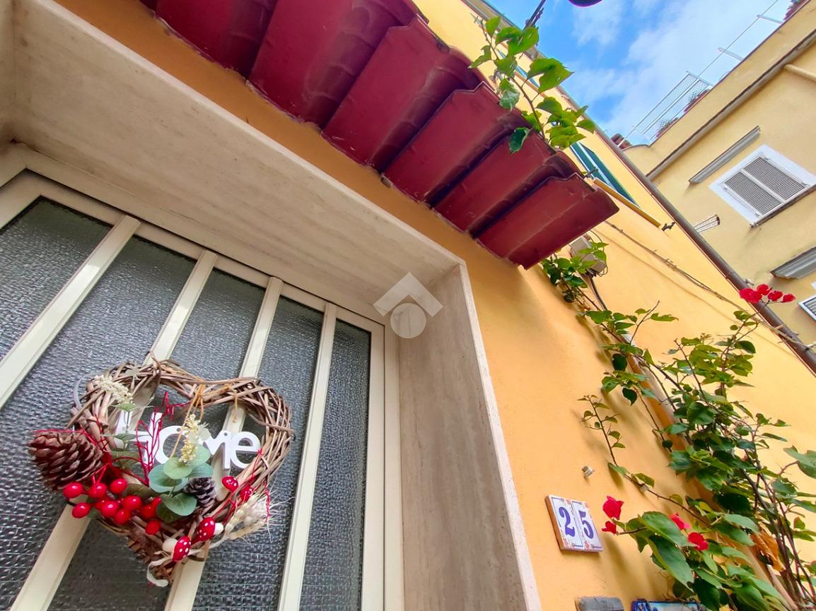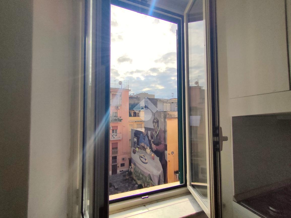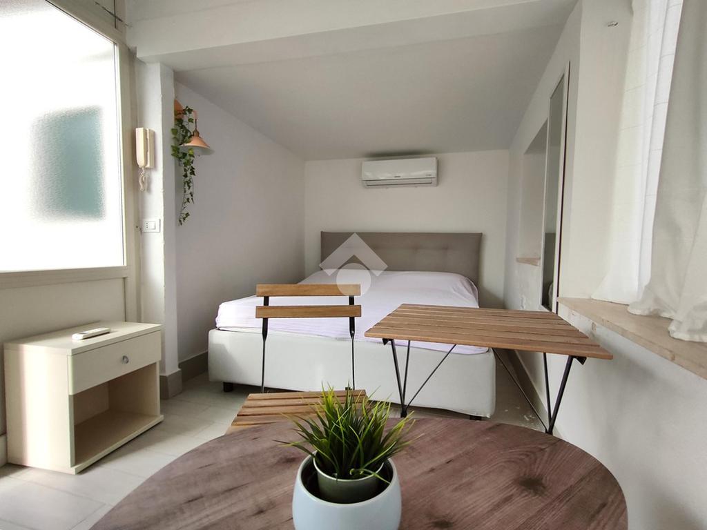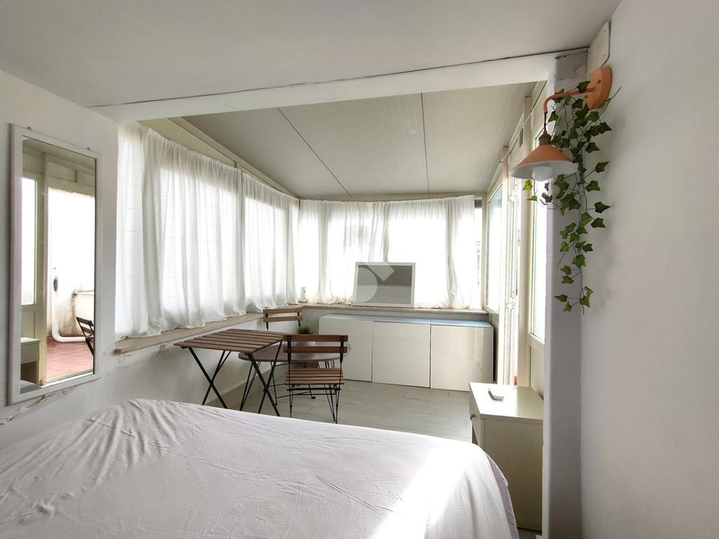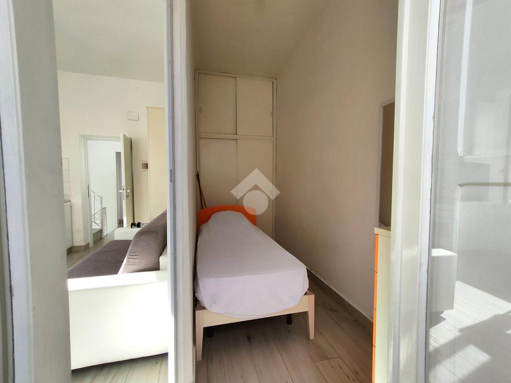 Entrando accoglie un luminoso soggiorno con angolo cottura. È presente sia una finestra che affaccia sulla sottostante piazzetta – davvero piacevole la veduta – che un balcone che affaccia su Via Indipendenza. Adiacente il soggiorno è presente una prima cameretta con accesso al balcone. Dal soggiorno, passando per la scala condominiale, si accede ad un disimpegno che conduce ad una cameretta con balcone che affaccia nel vicolo e ad un bagno completo di finestra. Salendo la scala si arriva ad un terrazzino condominiale e quindi alla mansarda in cui è stata collocata una camera matrimoniale ed è presente una veranda antistante.