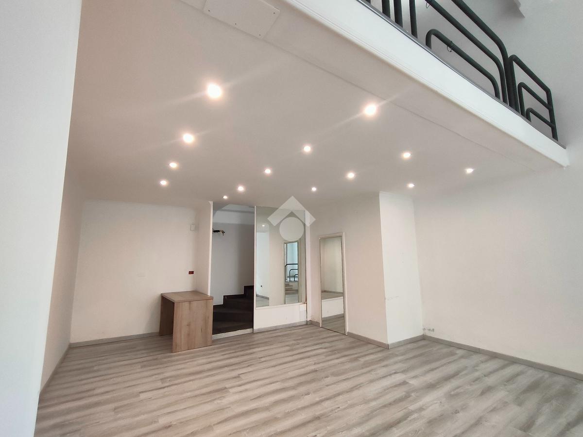 Il negozio, di circa 70 mq complessivi, è composto da un ampio locale principale con livelli sfalsati, che conferiscono dinamismo e funzionalità agli spazi. È presente un wc di servizio.