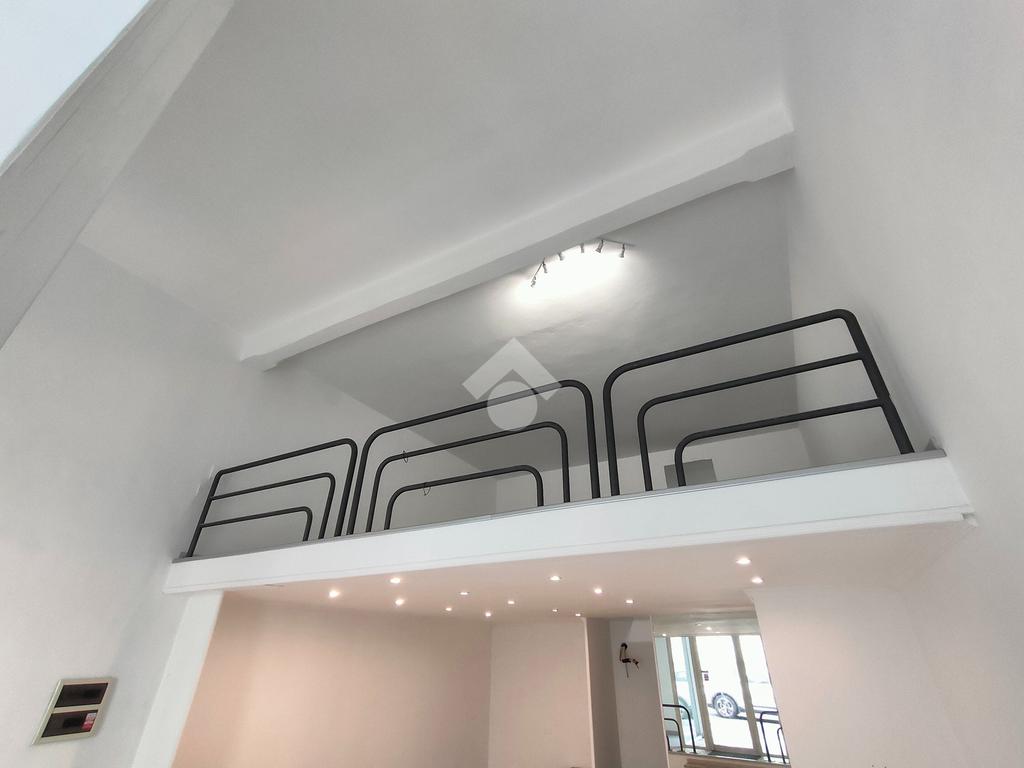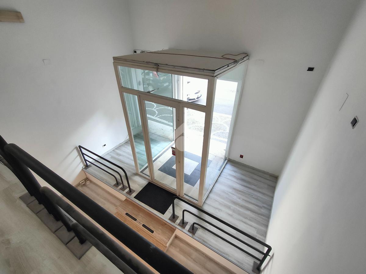 Tramite una scala interna si accede al piano soppalcato, dotato di finestra per l’aerazione, ideale come spazio espositivo, ufficio o magazzino.