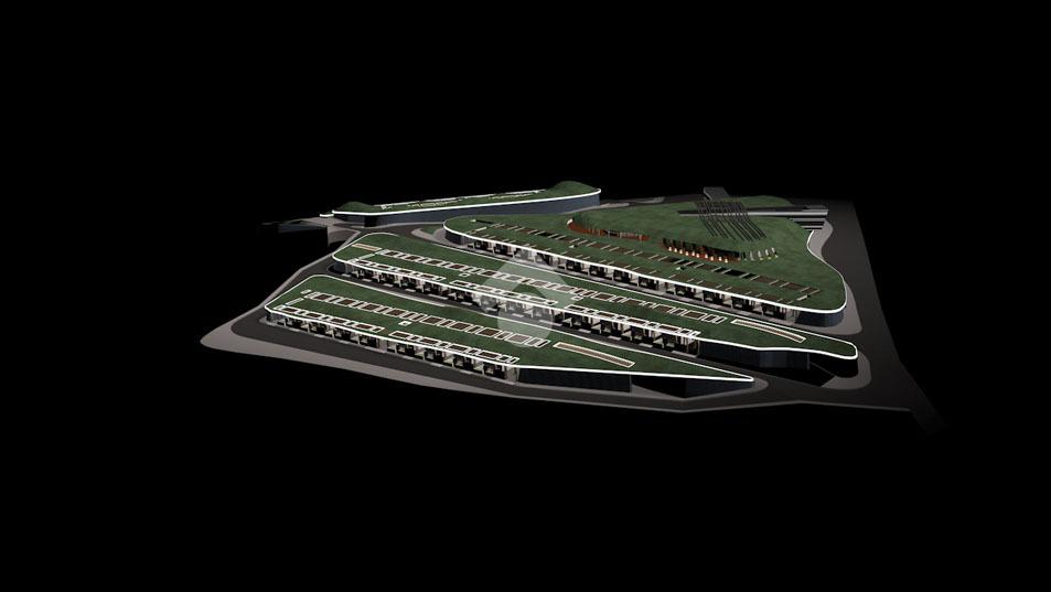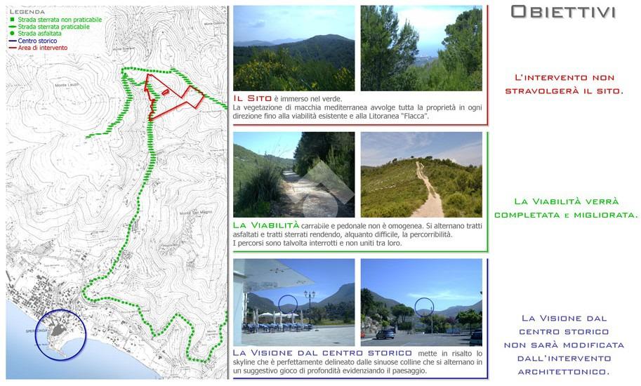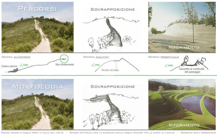 Le linee che individuano il progetto, nascono dalla sinuosità delle curve di livello ed esse dettano la collocazione dei blocchi ricettivi.